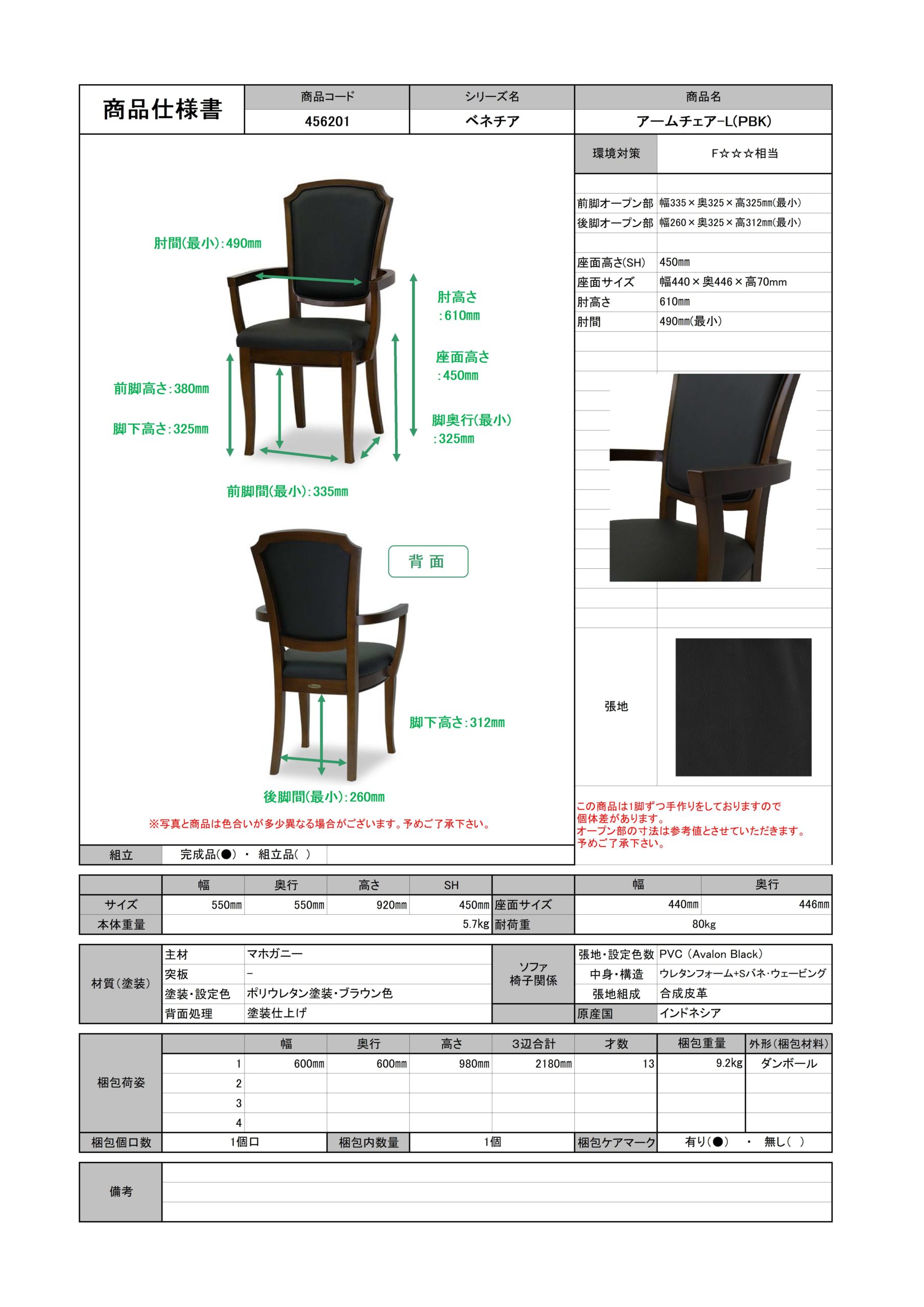 ベネチア アームチェア-L(PBK)